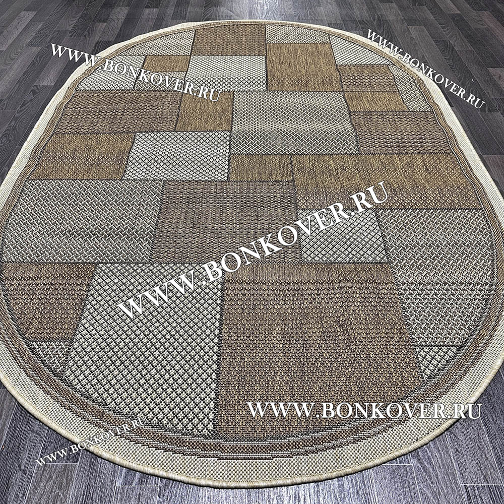 Главным преимуществом безворсовых ковров из износостойких синтетических материалов является их практичность. Безворсовый ковер Циновка Дизайн 01 Brown Овал прослужит ни один десяток лет, оставаясь привлекательным.