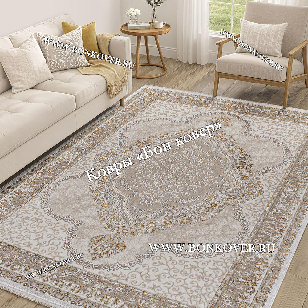 Ковер Для Гостиной Арт 29845 Турция Бежевый с Белым станет шикарным преображением жилого помещения, подчеркивая высокий статус владельца.