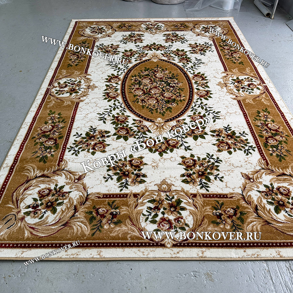 Ковер для гостиной дизайн 25486 New 2 Бежевый станет стильным преображением вашей комнаты, подчеркивая высокий статус семьи владельца.