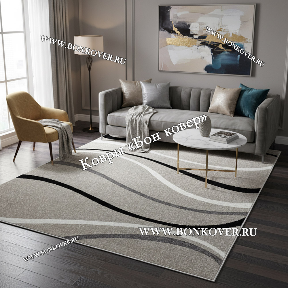 Ковер Карпет Рисунок 22 Абстракция Серый Прямоугольный