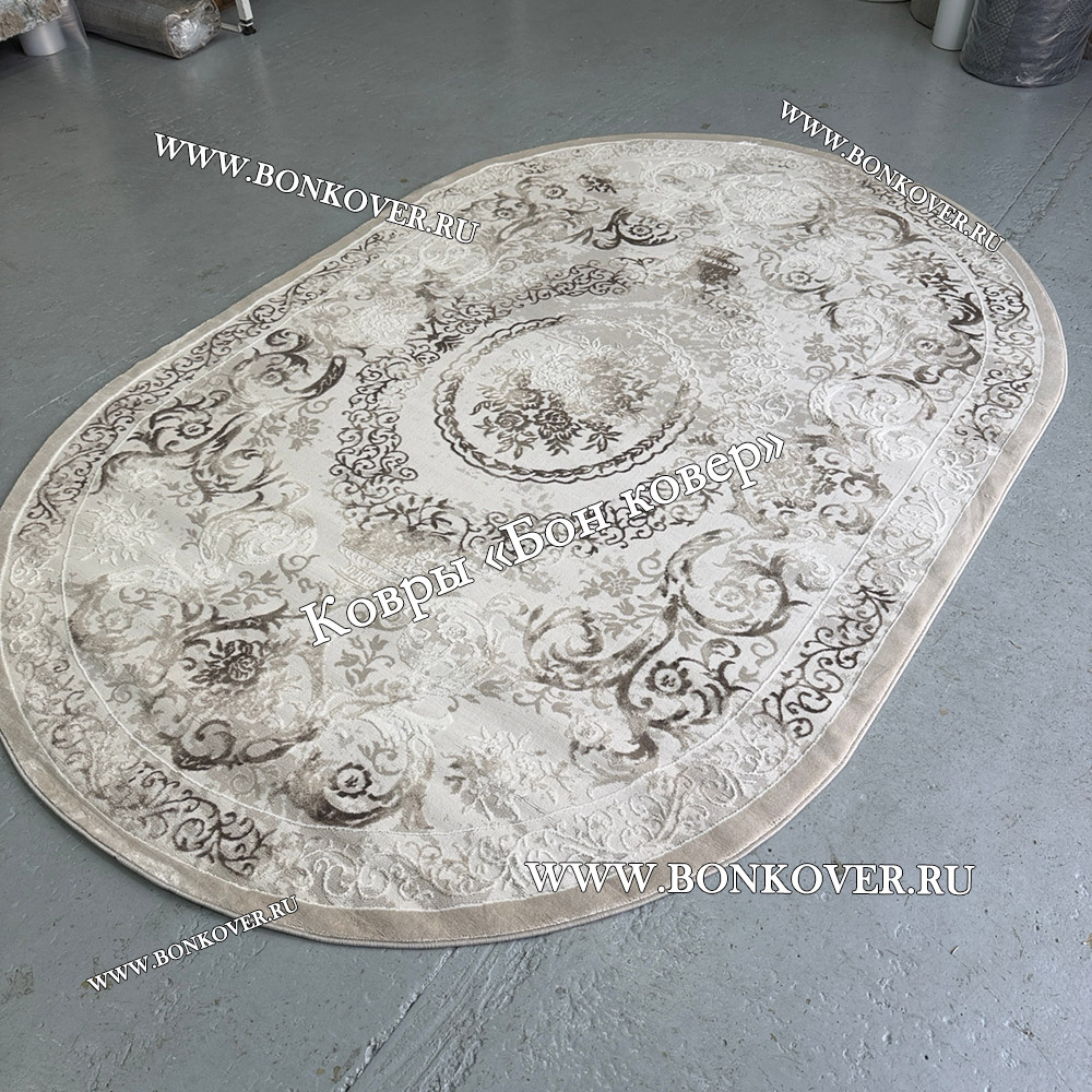Шикарный Турецкий Ковер Для Гостиной Дизайн 01 Бежево-Коричневый Овал наполняет интерьер вашего дома теплом и уютом, гармонично сочетает в себе изящество и красоту. Он соткан из современных материалов, комфортный и долговечный.